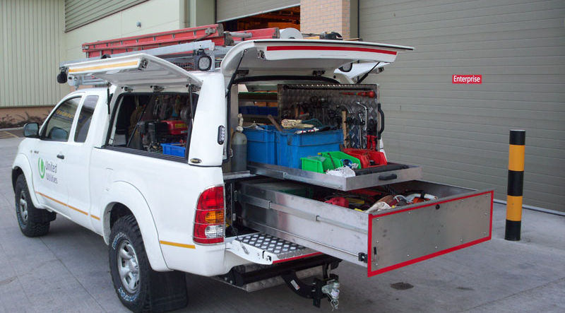 Wide Half Slide (500mm Wide x 1,400mm Long) + Single Steel Drawer (250mm High x 1,400mm Long) for Dbl-Cabs. Available in Aluminium.